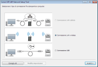Selezionare [Connessione LAN wireless] e fare clic su [Avanti].
