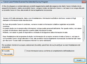 Se si seleziona [Accetto], viene installato il programma di indagine estesa prodotto.