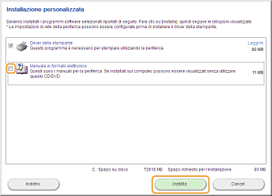 * Tuttavia, l'icona non viene visualizzata se è stata selezionata l'opzione [Installazione personalizzata].