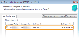 Selezionare la casella di controllo per la stampante che si desidera installare da [Elenco stampanti].