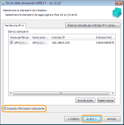 Selezionare la casella di controllo [Imposta informazioni stampante] e fare clic su [Avanti].