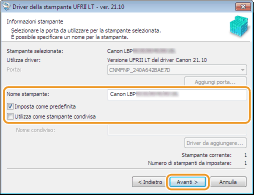 Selezionare la casella di controllo se si desidera usare la stampante come stampante predefinita. [Utilizza come stampante condivisa]