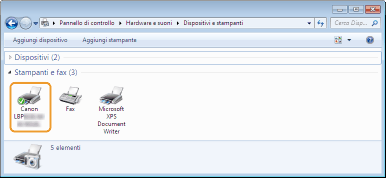 Se il driver della stampante è stato installato correttamente, un'icona relativa alla stampante installata viene visualizzata nella cartella stampanti (Visualizzazione della cartella stampante).