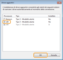 Se si desidera utilizzare i driver della stampante scaricati dal sito Web di Canon, scaricare i driver aggiuntivi (driver della stampante per versioni di processore diverse da quelle del server di stampa).