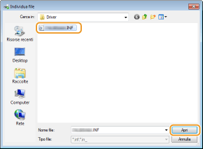 Specificare la cartella che contiene il driver della stampante aggiuntivi, selezionare il file Inf e fare clic su [Apri].