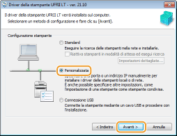 Selezionare [Personalizzata] e fare clic su [Avanti].