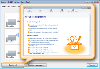 Rischio di fuga di informazioniSe la stampante è collegata a una rete non protetta, terze parti potrebbero entrare in possesso di informazioni personali perché le onde radio usate dalle comunicazioni wireless possono estendersi nelle vicinanze, anche oltre le pareti. L'utilizzo di una connessione LAN wireless è a propria discrezione e può comportare rischi.