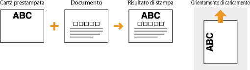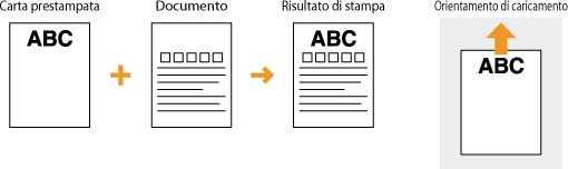 In questa sezione viene descritto come caricare la carta prestampata con l'orientamento corretto e il lato giusto rivolto verso l'alto. Per una descrizione completa della procedura di caricamento della carta nel vassoio multiuso, vedere Caricamento della carta nel vassoio multiuso.
