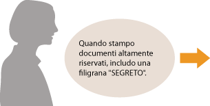 Impostare "SEGRETO" come filigrana e registrarla in "profili." A questo punto è possibile selezionare questa filigrana dai profili ogni volta che è necessario. Registrazione delle combinazioni delle impostazioni di stampa utilizzate più spesso