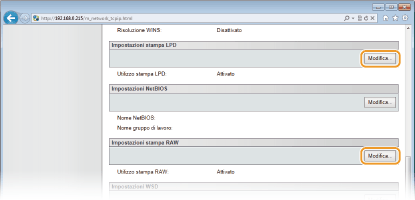 Fare clic su [Modifica] in [Impostazioni stampa LPD] o [Impostazioni stampa RAW].