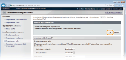 Fare clic su [Modifica] in [Impostazioni IPv4].
