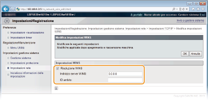 Fare clic su [Modifica] in [Impostazioni WINS].