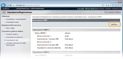 Se entrambe le versioni di SNMP sono disabilitate, alcune funzioni della macchina non saranno disponibili, come il conseguimento di informazioni sulla macchina tramite il driver di stampa.
