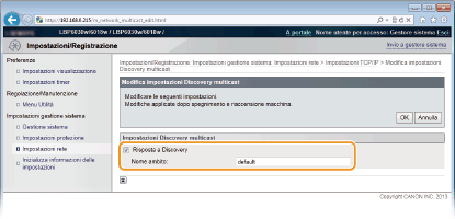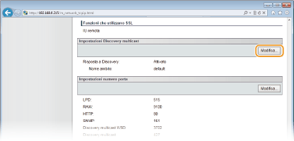 Fare clic su [Modifica] in [Impostazioni Discovery multicast].