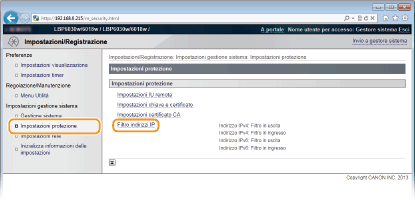 Immettere un indirizzo IP (o un intervallo di indirizzi IP) nella casella di testo [Indirizzo da registrare] e fare clic su [Aggiungi].