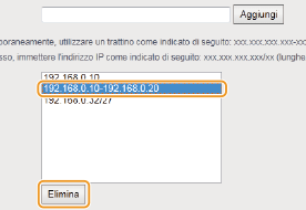 Selezionare l'indirizzo IP da eliminare, quindi fare clic su [Elimina].