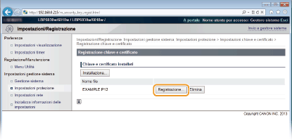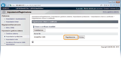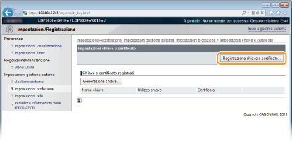 Fare clic su [Registrazione chiave e certificato] o [Registrazione certificato CA].