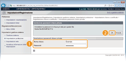 Specificare il nome della coppia di chiavi e password, quindi fare clic su [OK].