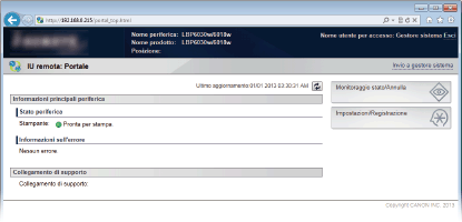 Inserire "http://<indirizzo IP della macchina>/" nel campo degli indirizzi e premere il tasto [INVIO].