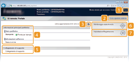 Visualizza il collegamento alle informazioni di supporto, come specificato in [Informazioni periferica] sotto [Gestione sistema].