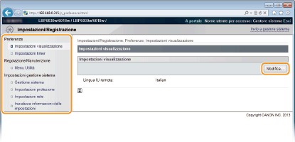 L'IU remota consente di modificare diverse impostazioni della macchina dal computer. Ad esempio, si possono modificare le impostazioni di rete e protezione.