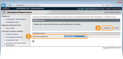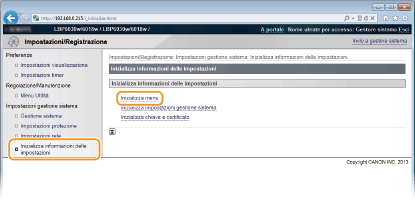 Fare clic su [Inizializza informazioni delle impostazioni]
