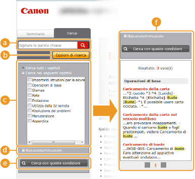 Fare clic per alternare la visualizzazione tra la scheda [Sommario] e la scheda [Cerca].