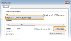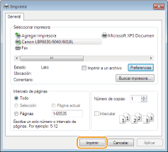 Pulse o haga clic en [Dispositivos] [Imprimir] el equipo que está utilizando [Imprimir].Cuando imprima de este modo, solo podrá utilizar algunas opciones de impresión.