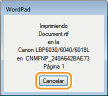 ![]() Si aparece una pantalla como la anterior, puede cancelar la impresión haciendo clic en [Cancelar]. Si la pantalla desaparece o no aparece en absoluto, puede cancelar la impresión de otros modos. Cancelación de trabajos de impresión