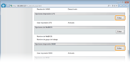 Haga clic en [Editar] en [Opciones impresión LPD] o [Opciones impresión RAW].