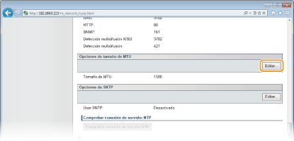 Haga clic en [Editar] en [Opciones de tamaño de MTU].