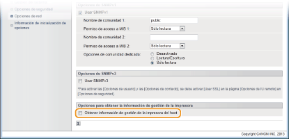 Especifique las opciones de adquisición de información de gestión de la impresora.