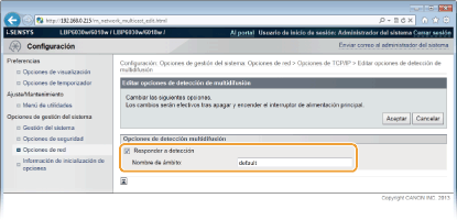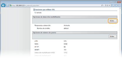 Haga clic en [Editar] en [Opciones de detección multidifusión].