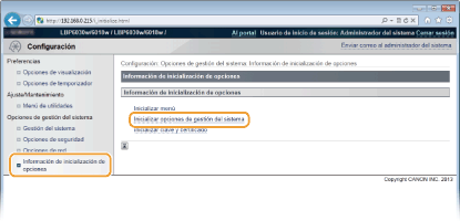 [Inicializar opciones de gestión del sistema].