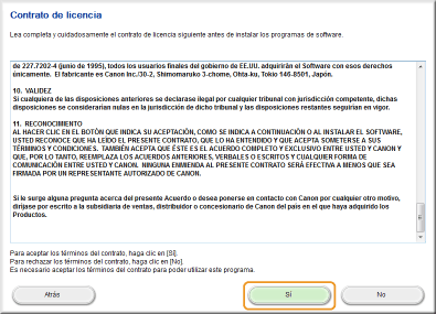 Lea el Contrato de licencia y haga clic en [Sí] para aceptarlo.