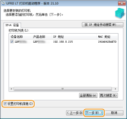 从 [打印机列表] 选中所要安装打印机的复选框。