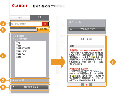 单击可在 [目录] 选项卡和 [搜索] 选项卡之间切换显示。