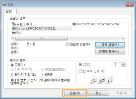 인쇄가 시작됩니다. 일부 응용 프로그램에서는 아래와 같은 화면이 나타납니다.