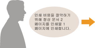 [1면에 2쪽 인쇄]를 프린터 드라이버의 기본 설정으로 설정하십시오. 다음 인쇄 작업부터는 모든 인쇄물 페이지에 문서의 두 페이지가 표시됩니다. 기본 설정 변경
