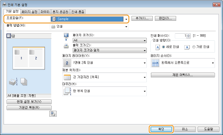 자주 사용하는 인쇄 설정 조합 등록