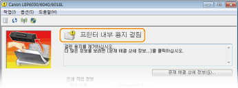 기기에서 걸린 용지를 무리하게 제거하지 마십시오.용지를 무리하게 제거하면 기기의 부품이 손상될 수 있습니다. 용지를 제거할 수 없으면 지역 공인 Canon 대리점이나 Canon 서비스 센터에 문의하십시오.. 문제를 해결할 수 없는 경우