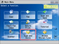 Place your originals on the platen glass or in the feeder → press [Scan and Store].