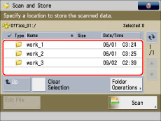 When scanning is complete, the scanned data is stored in the specified Advanced Space.