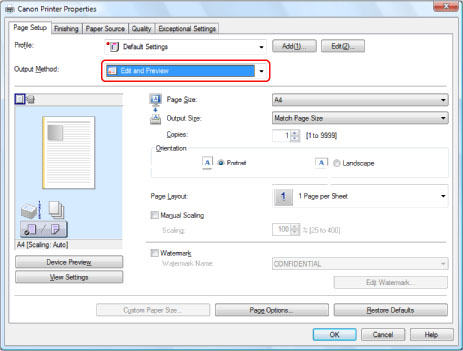 By specifying the print settings in the printer driver screen on the Control Panel, instead of in an application, you can register the settings as the default settings. To display the printer driver screen in the Control Panel for Windows XP, click [Start] → [Printers and Faxes] (or [Start] → [Control Panel] → [Printers and Other Hardware] → [Printers and Faxes]) → right-click the printer icon → click [Printing Preferences]. For Windows Vista, click [