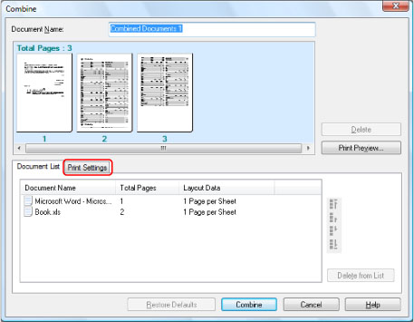 Using Canon PageComposer, you can combine multiple documents into one document and print the merged document.