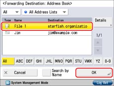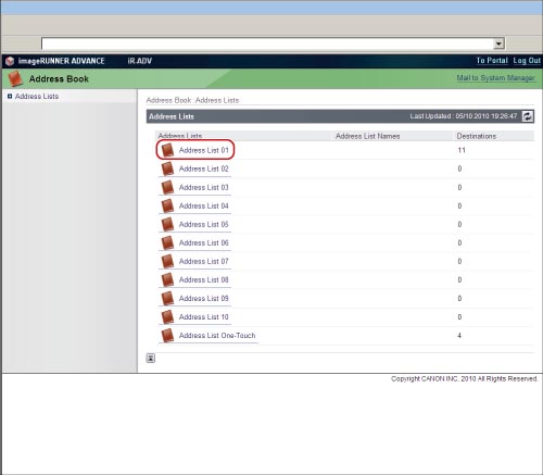 Click [Address Book] → click [Address List 01] from the displayed Address Lists screen.