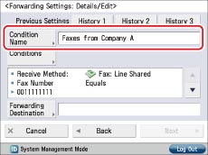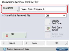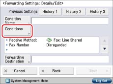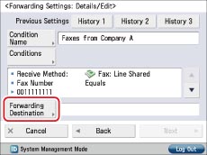Take note that if the forwarding condition is set to 'Off', faxes are output instead of automatically forwarding to a computer.