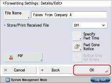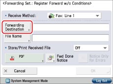→ [Function Settings] → [Receive/Forward] → [Common Settings] → [Forwarding Settings] → [Register].