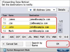 You can select only one destination for a forwarding done notice. To send to multiple destinations, register the destinations under a single group address.