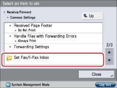 Press → [Function Settings] → [Receive/Forward] → [Common Settings] → [Set Fax/I-Fax Inbox].